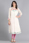 Ecru mandarin neck full sleeve kurta with detchable inner lining and floral print jacket outside.